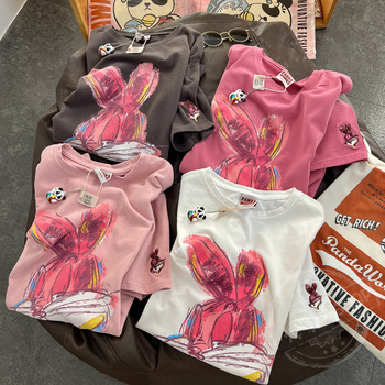 เสื้อยืดแขนสั้นสำหรับผู้หญิงเสื้อยืดคอกลมพิมพ์ลายการ์ตูนสำหรับเด็กผู้หญิงผ้าฝ้ายสไตล์เกาหลีใหม่ครึ่งแขน