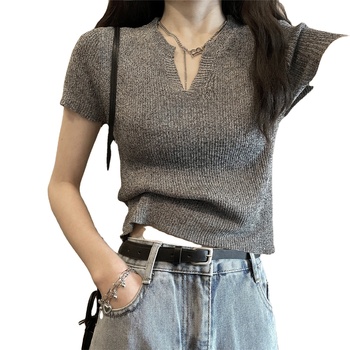 เสื้อยืดมินิมอลสำหรับผู้หญิงเสื้อถักทรงสลิมมินิสไปซ์สำหรับผู้หญิงเสื้อยืดแขนสั้น